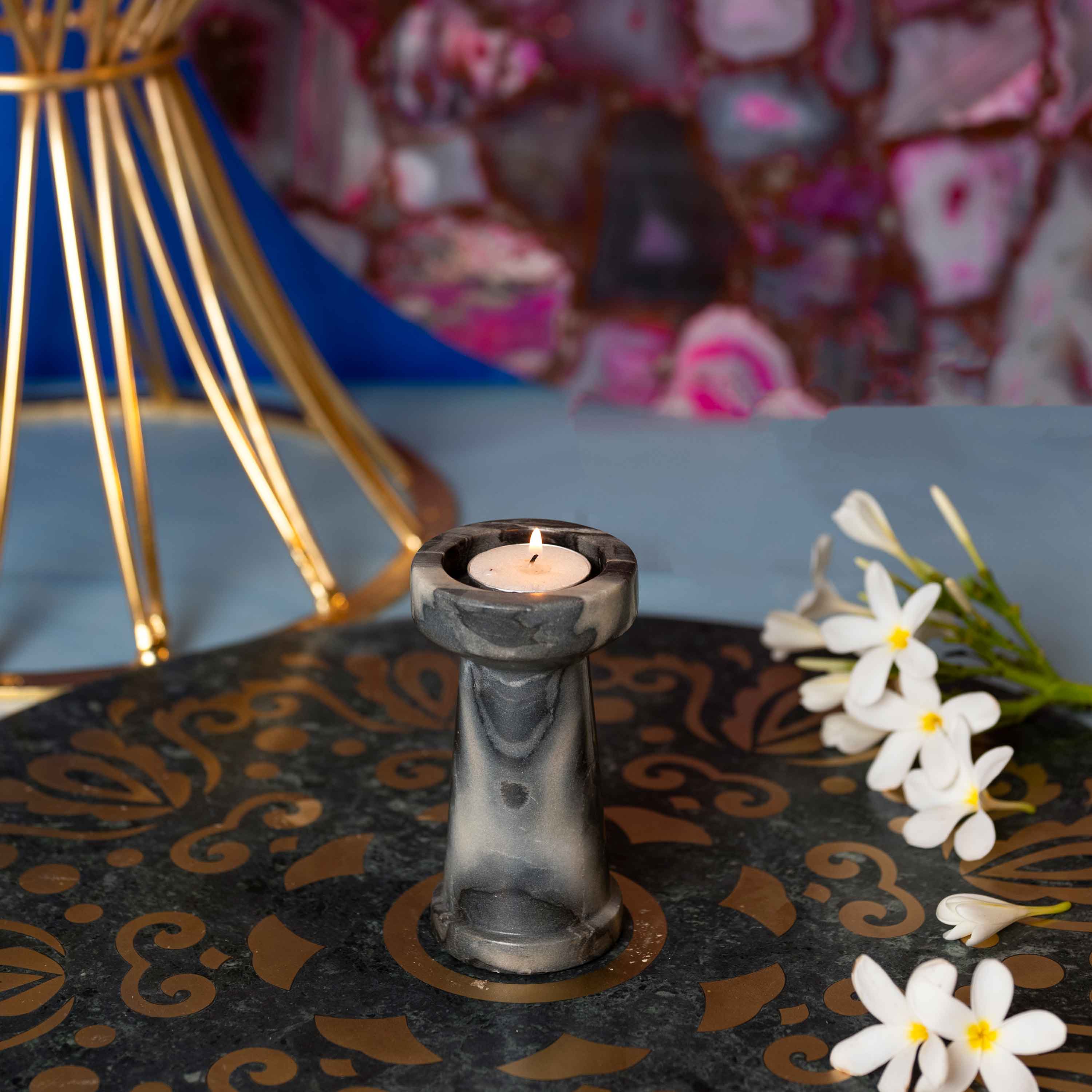GREY MARBLE T LIGHT HOLDER SMALL