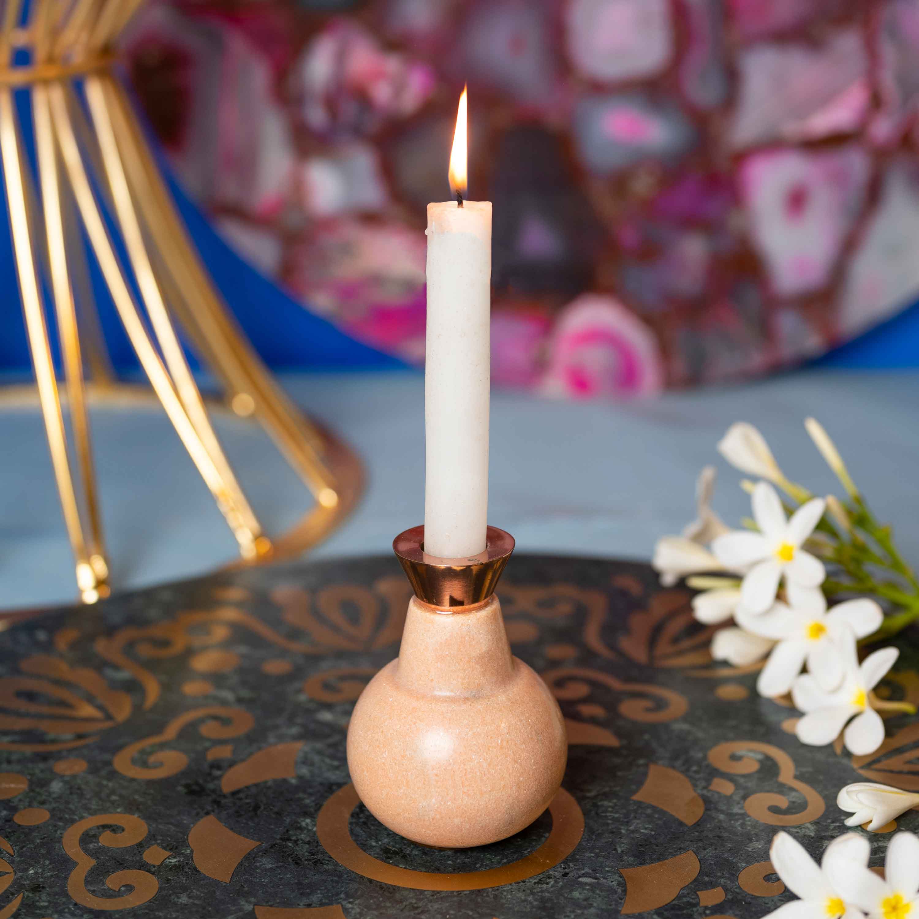 PINK MARBLE CANDLE HOLDER WITH METAL