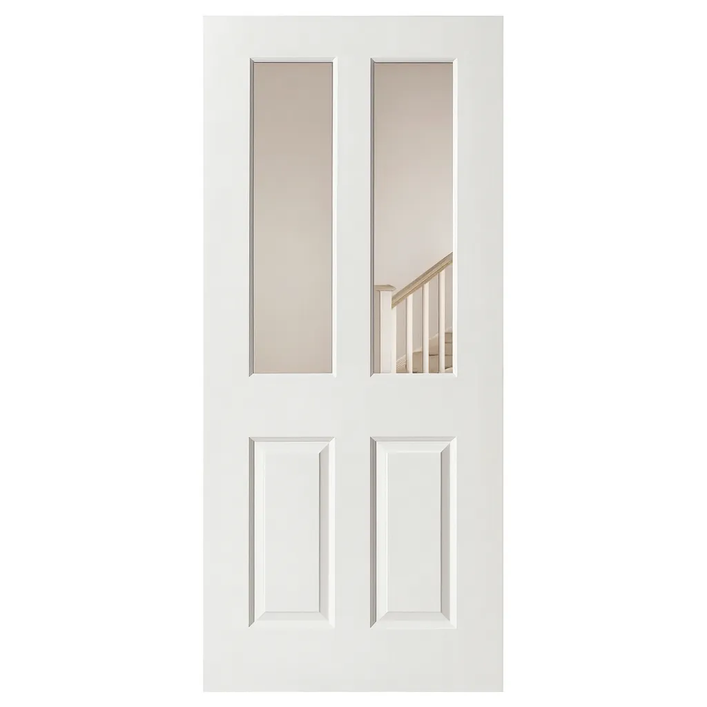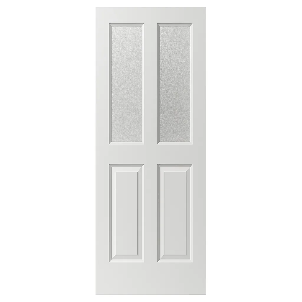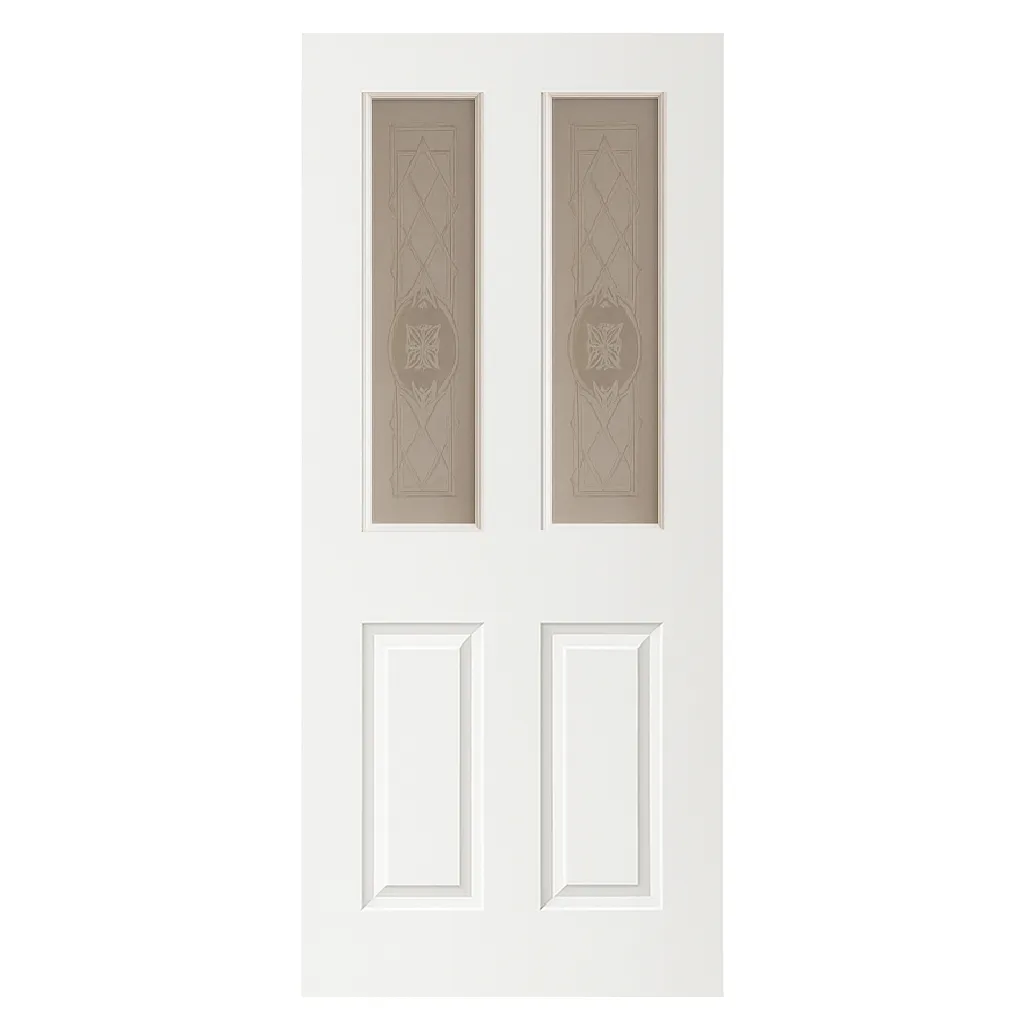 PREMDOR White Primed Textured 2 Panel 2 Top Patterned Glass Internal Hollow Core Door