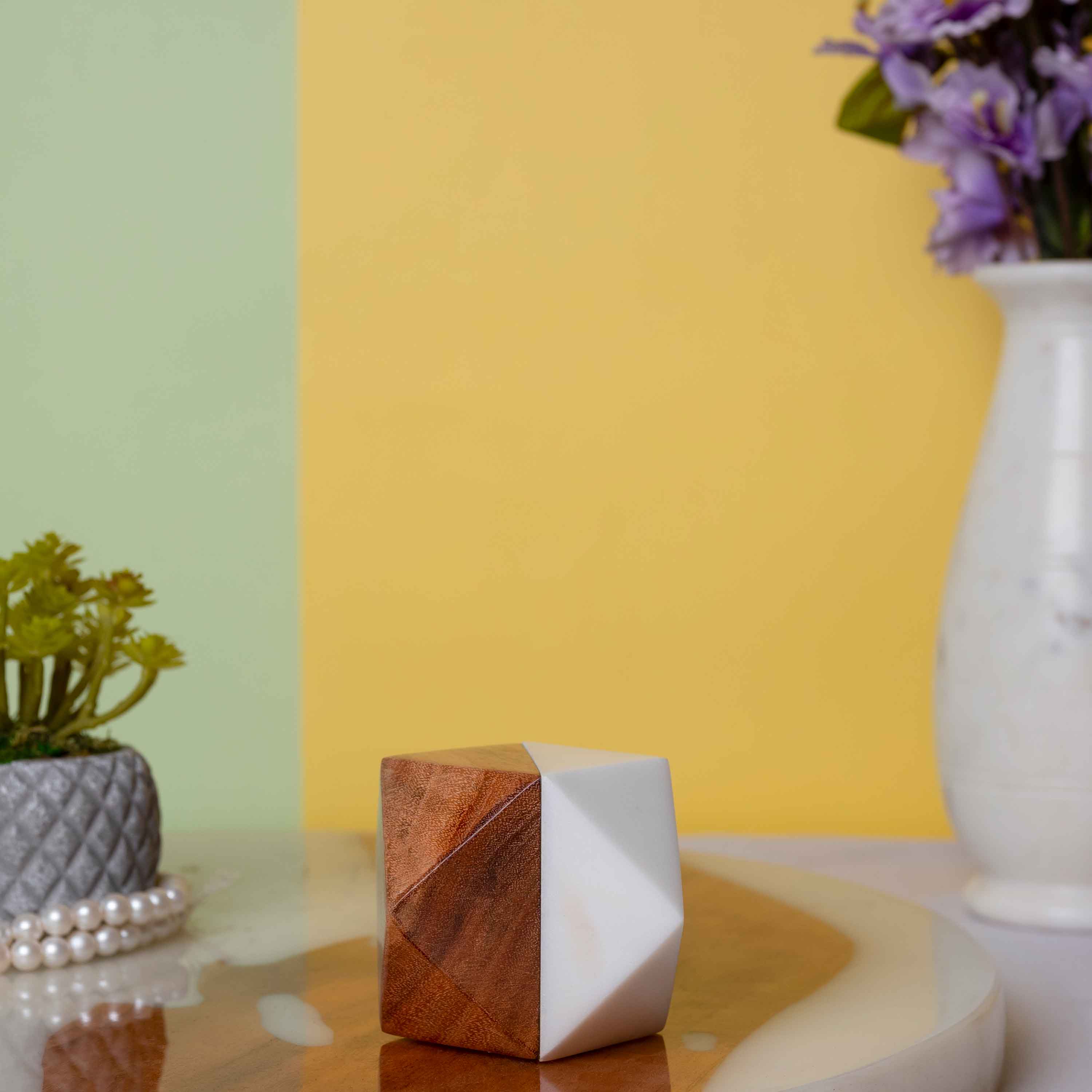 WHITE MARBLE & ACACIA WOOD DECORATIVE OBJECT