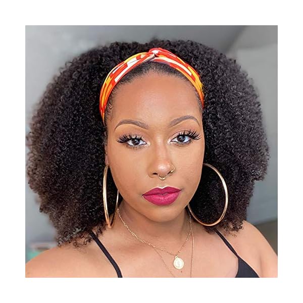 180% Density Afro Kinky Curly Wig Human Hair Headband Wig Short Curly Full Machine Made Human Hair Wig With Headband No Glue No Gel Natural Color 14 Inch