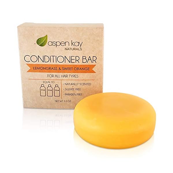 Aspen Kay Naturals Conditioner Bar, Lemongrass, 2.3 Ounce. Made With Natural & Organic Ingredients, All Hair Types including frizzy hair, Sulfate-Free, Cruelty-Free & Vegan