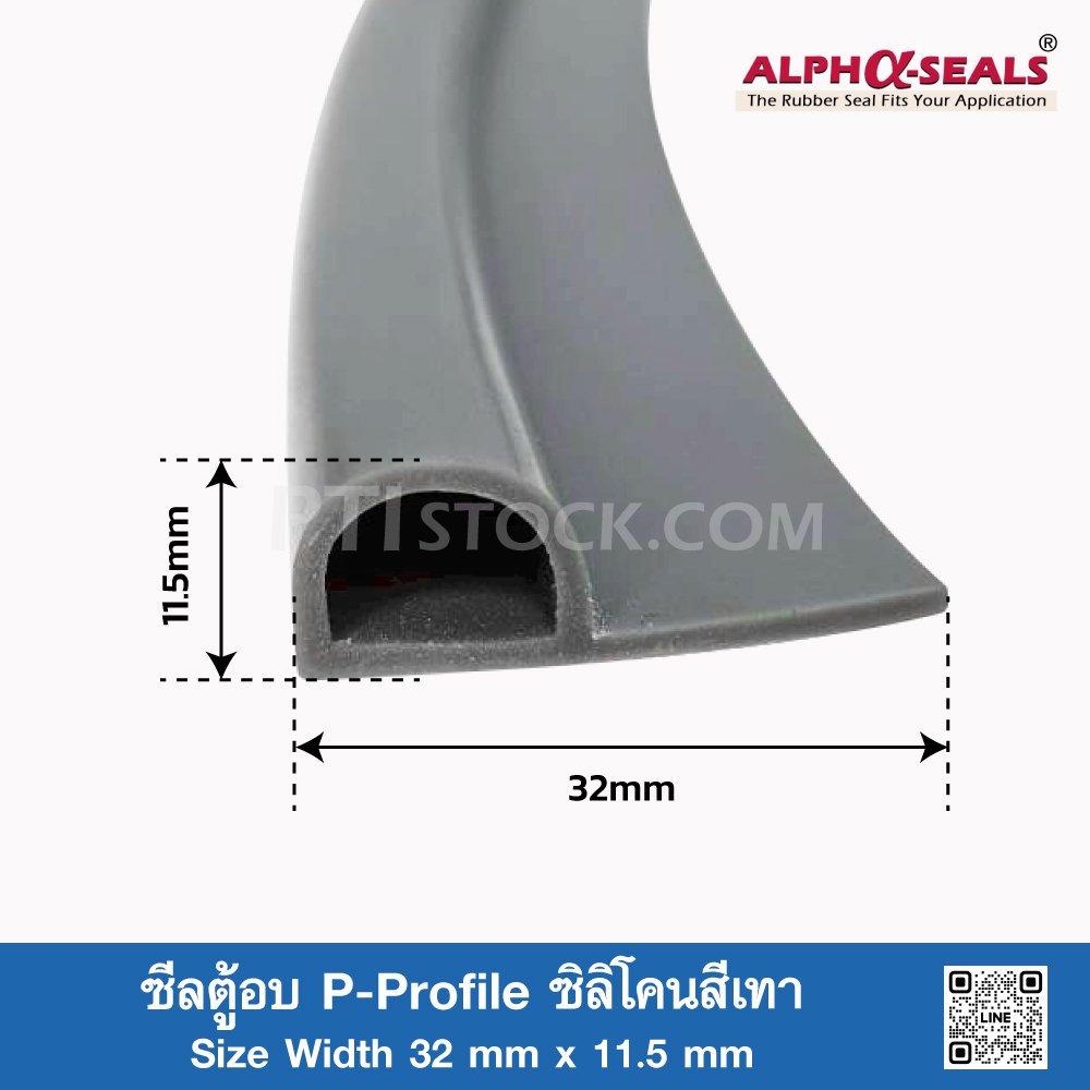 Grey Silicone Rubber P-Profile 32x11.5mm
