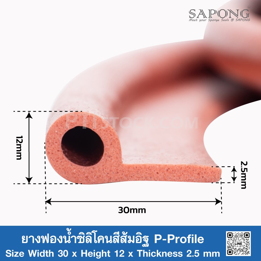 Firebrick Silicone Sponge Rubber P-Profile 30x12mm