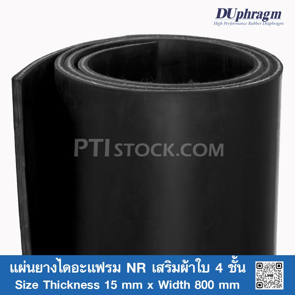 NR diaphragm rubber sheet reinforced with 4 layers of canvas, Thickness 15 mm.