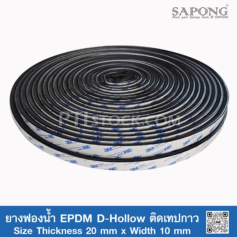 EPDM Sponge Rubber D-Hollow Self-Adhesive Tape 20x10mm