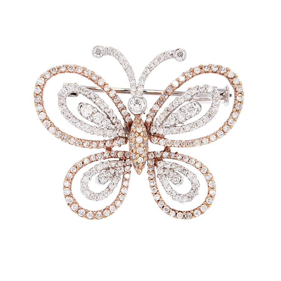 Diamonds in White and Rose Gold Butterfly Brooch