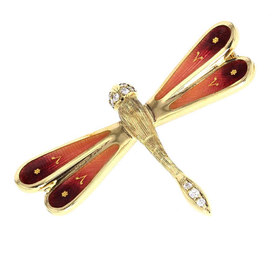 Enamel and Diamonds Yellow Gold Dragonfly Brooch
