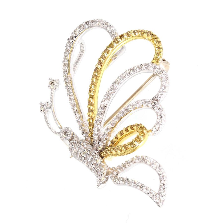 White and Yellow Diamonds in White and Yellow Gold Butterfly Brooch