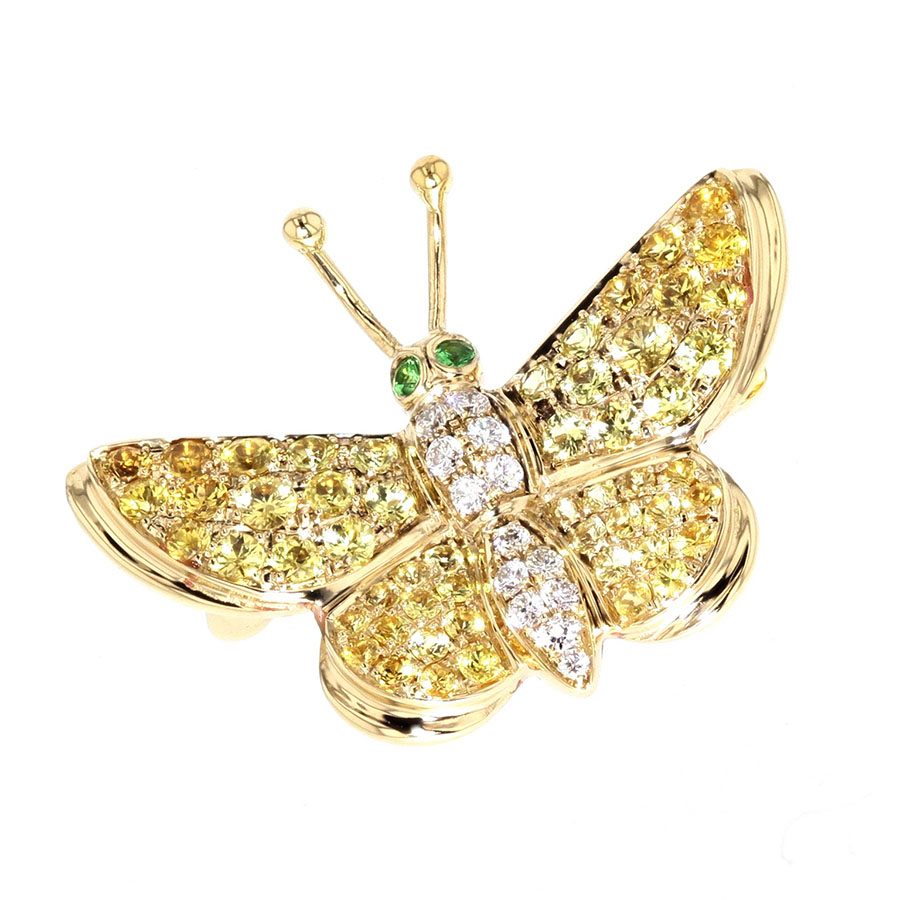 Yellow Sapphires, Diamonds and Garnets in Yellow Gold Butterfly Brooch