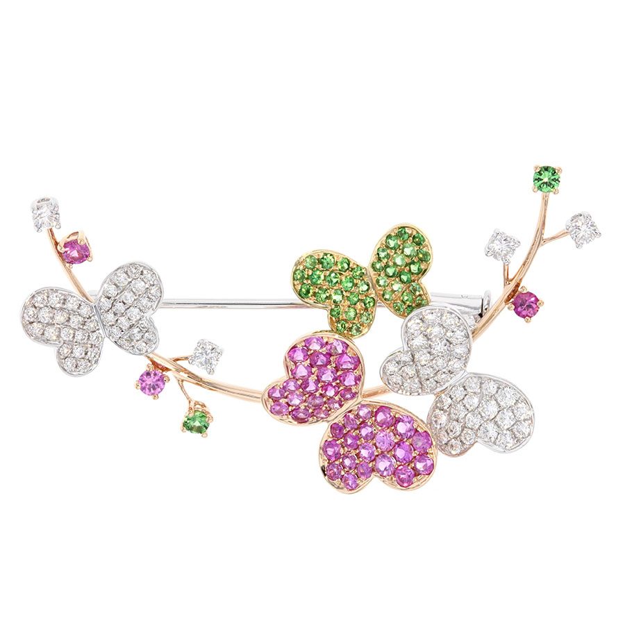 Pink Sapphires and Green Garnets Butterfly Brooch