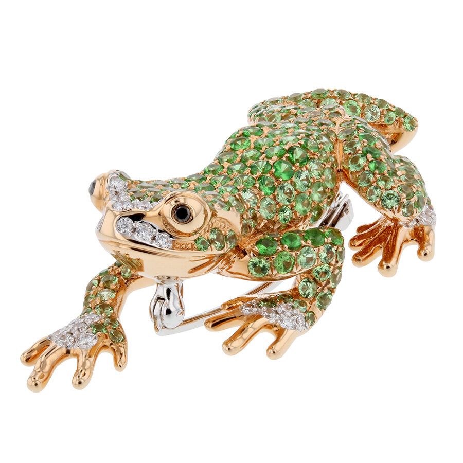 Green Garnets in Rose Gold Frog Brooch