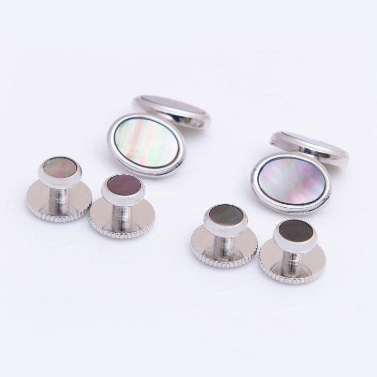 Mother-of-Pearl with Silver Chain Link Dress Stud & Cufflink Set