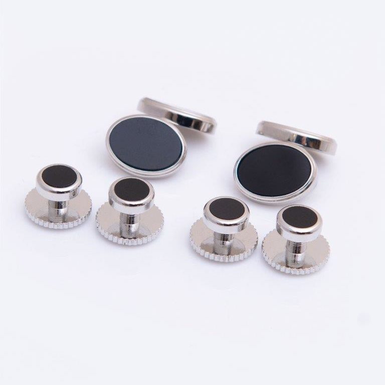 Onyx with Silver Chain Link Dress Stud & Cufflink Set