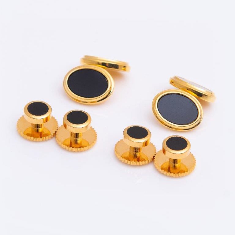 Onyx with Gilt Chain Link Dress Stud & Cufflink Set