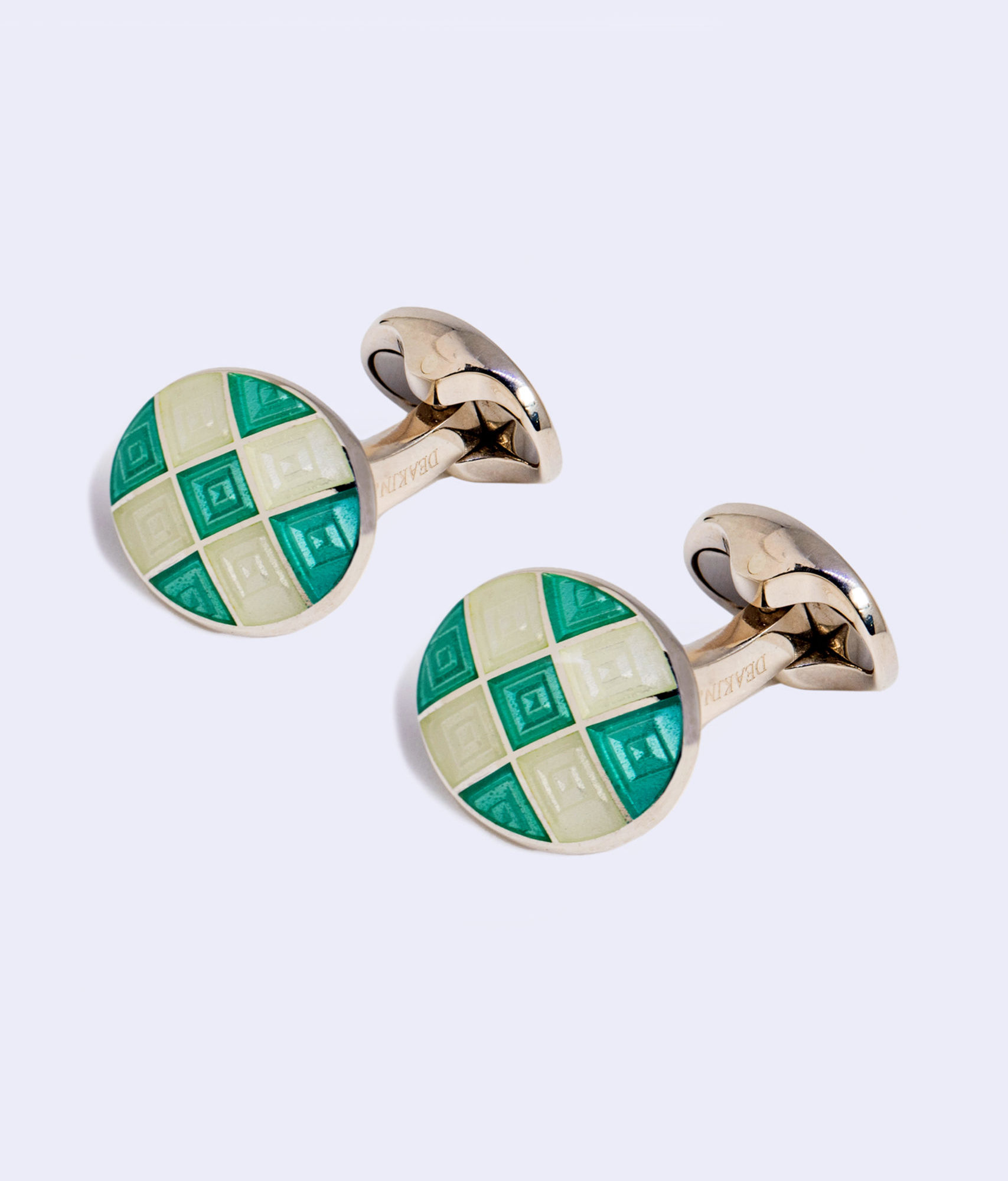 Sterling silver plain green and clear enamel cufflinks