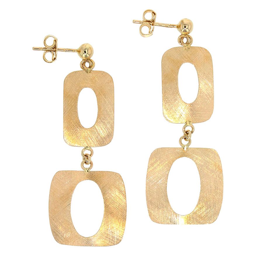 Brushed Satin Finished Yellow Gold Dangle Earrings