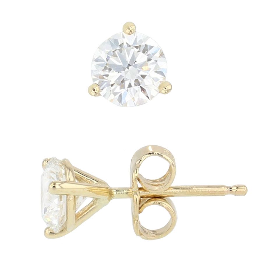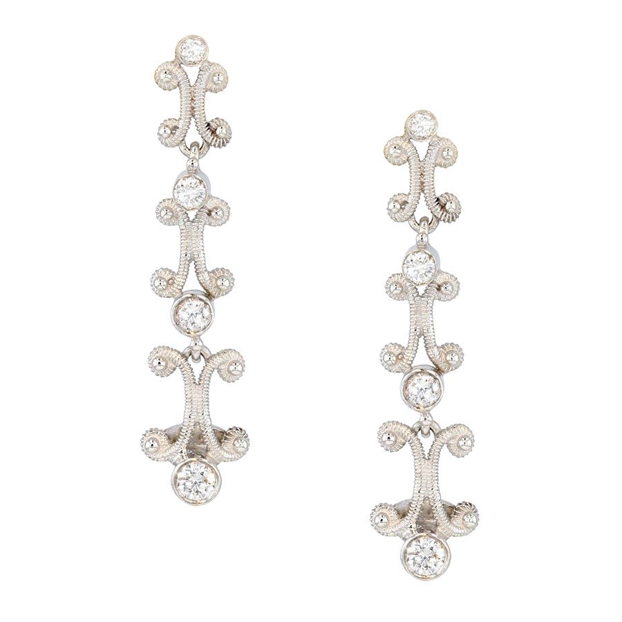 Satin Finished Yellow Gold Diamond Dangle Earrings