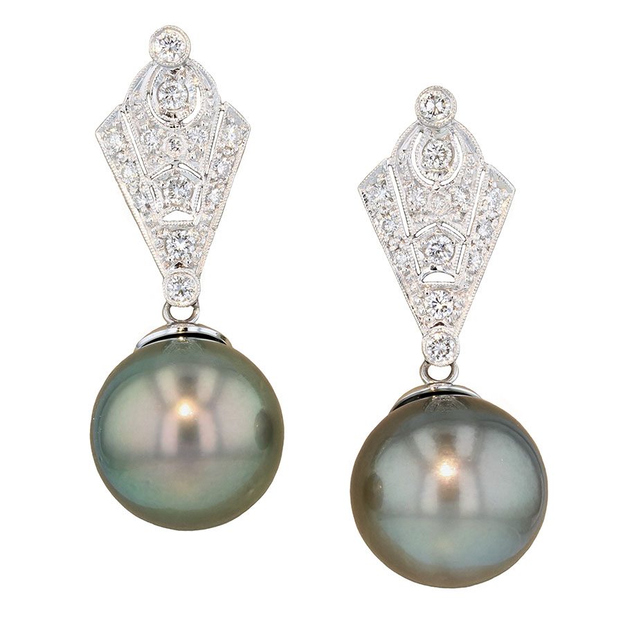 Rainbow Hematite in Diamond Halo Yellow Gold Dangle Earrings
