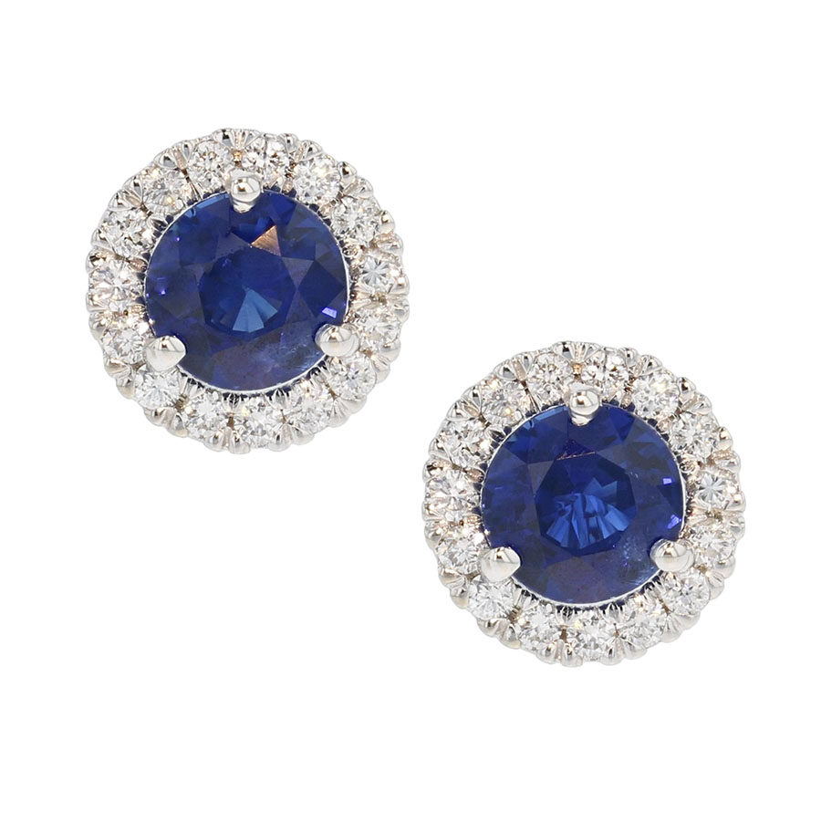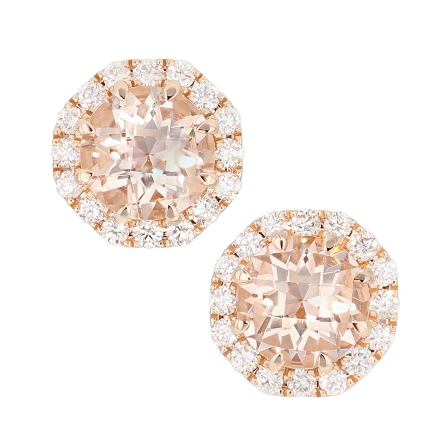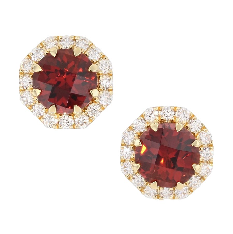 Round Garnets in Yellow Gold Halo Stud Earrings