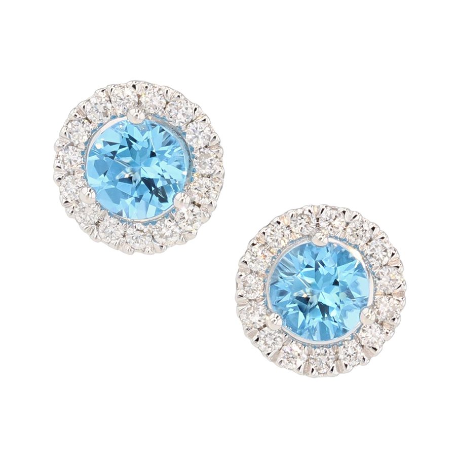 Pear Shaped and Round Blue Topaz in White Gold Earrings