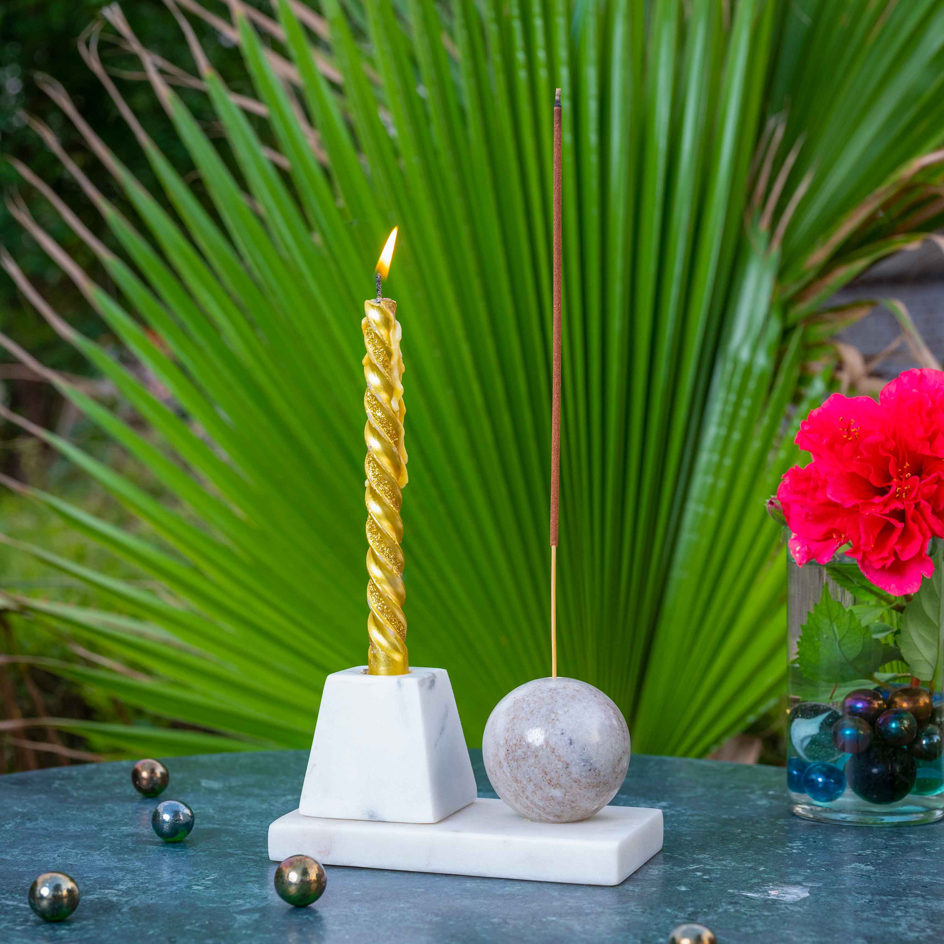 BROWN AND WHITE MARBLE INCENSE HOLDER