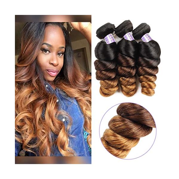 Allove Hair 10a Brazilian Ombre Loose Wave Bundles 3 Bundles Brazilian Virgin Human Hair 3 Tone 1B/4/27 Ombre Hair Extensions Human Hair Weave Bundles (20 22 24inch)