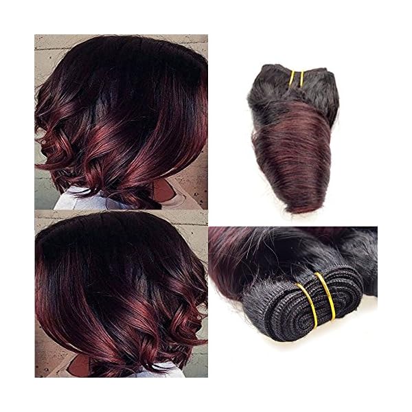 8 Inch Loose Wave pure color 99j Brazilian 9A Virgin Human Hair 4 Bundles Weft and Wavy Weave Hair Loose Wave bundles 50g/Pcs Human Hair Extensions (8inch,4pcs,#99j)