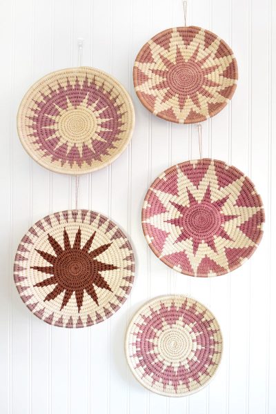 Hand-Picked Lavender & Natural Sisal Wall Basket Set – One Set Available