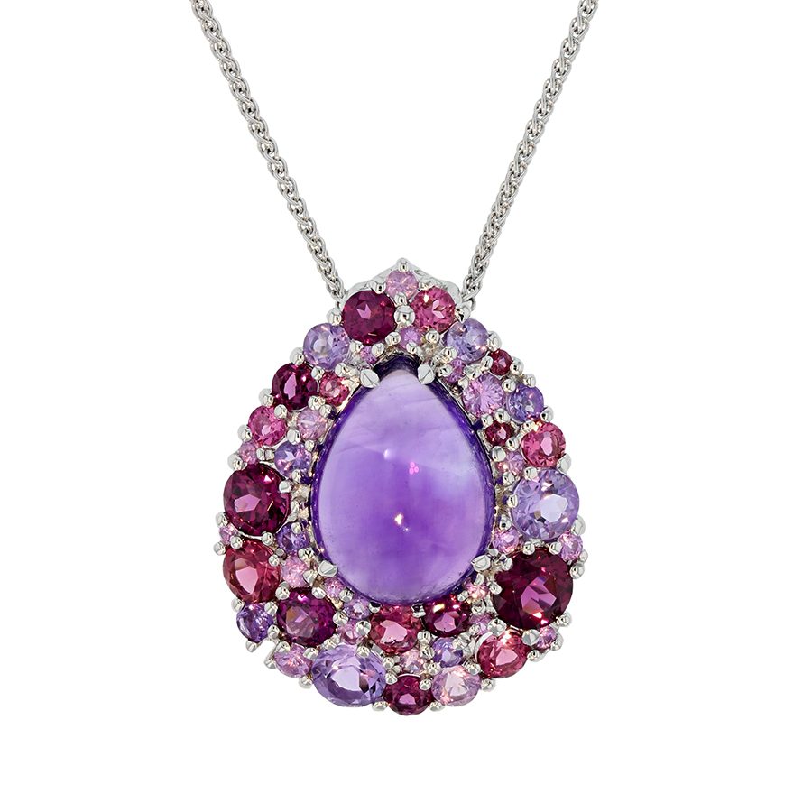 Pear Shaped Amethyst in Multi-Gem White Gold Necklace