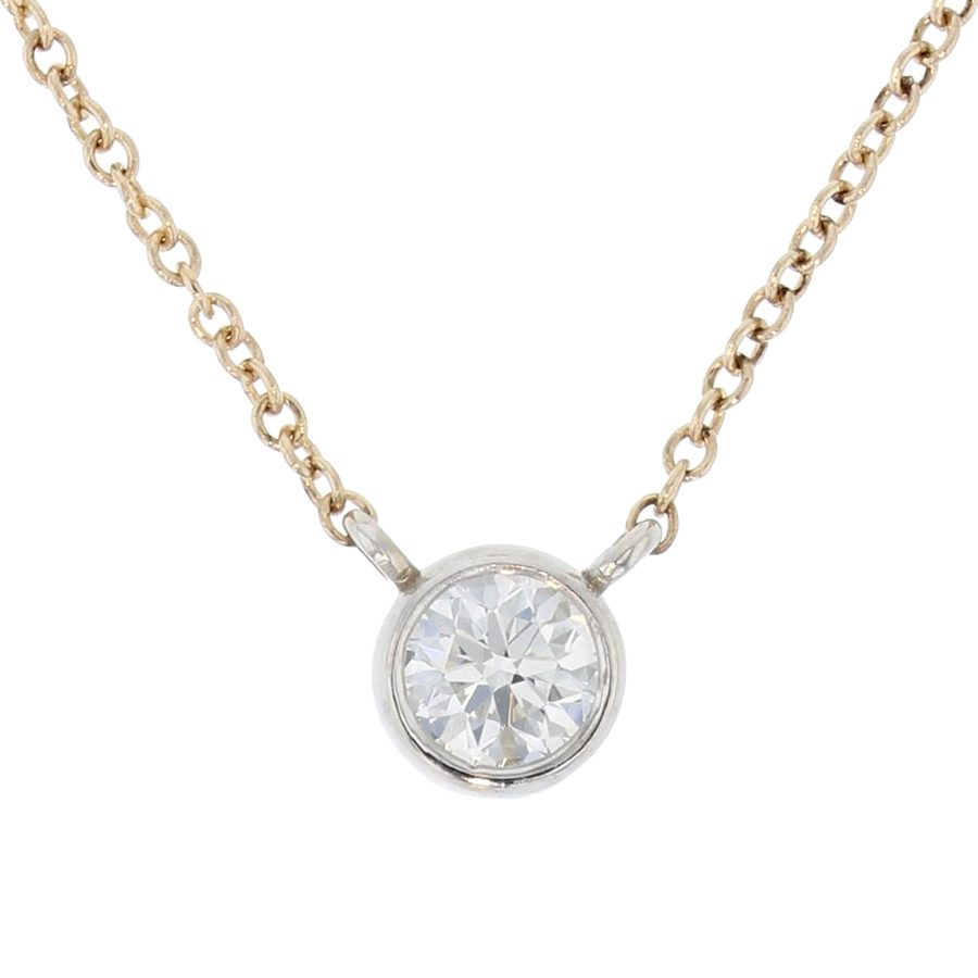 “Trapeze” Style Round Diamond in Yellow and White Gold Necklace