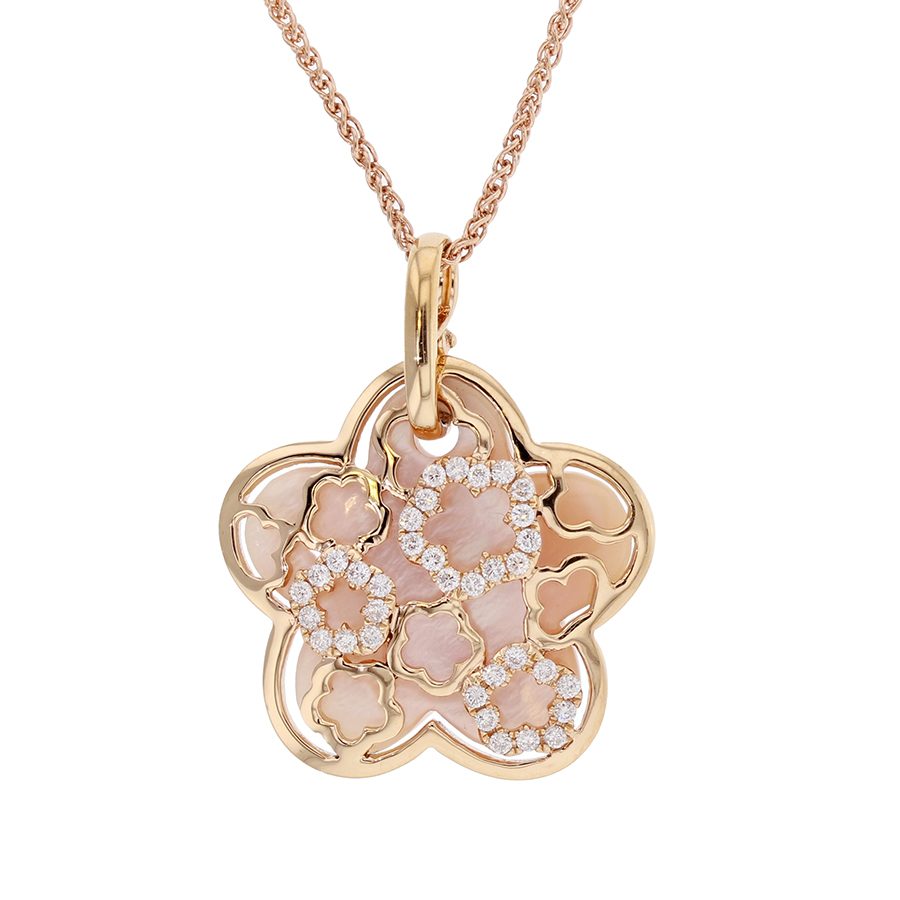 Pink Mother of Pearl in Rose Gold Floral Necklace