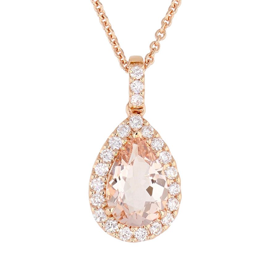 Pear Shaped Morganite in Rose Gold Halo Necklace