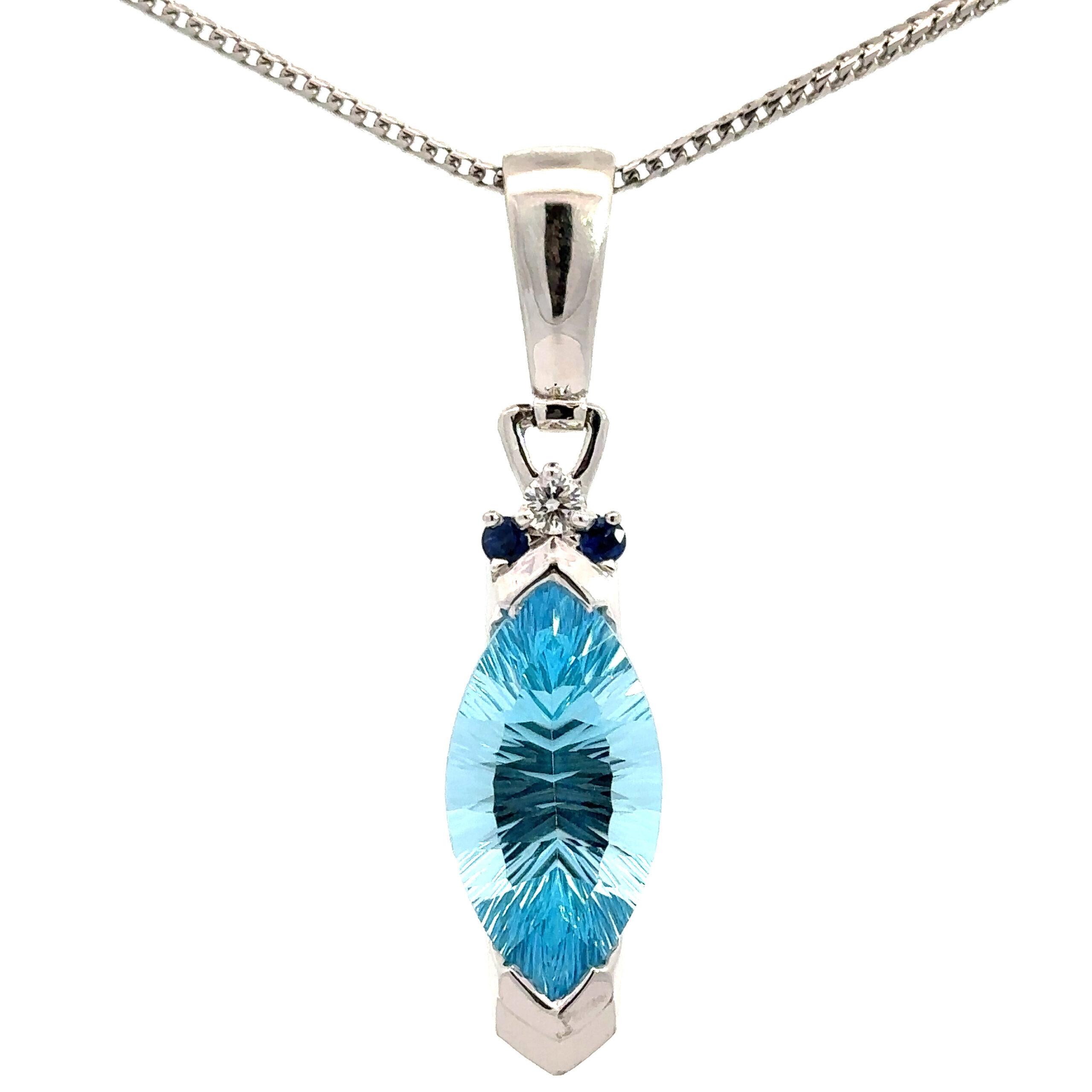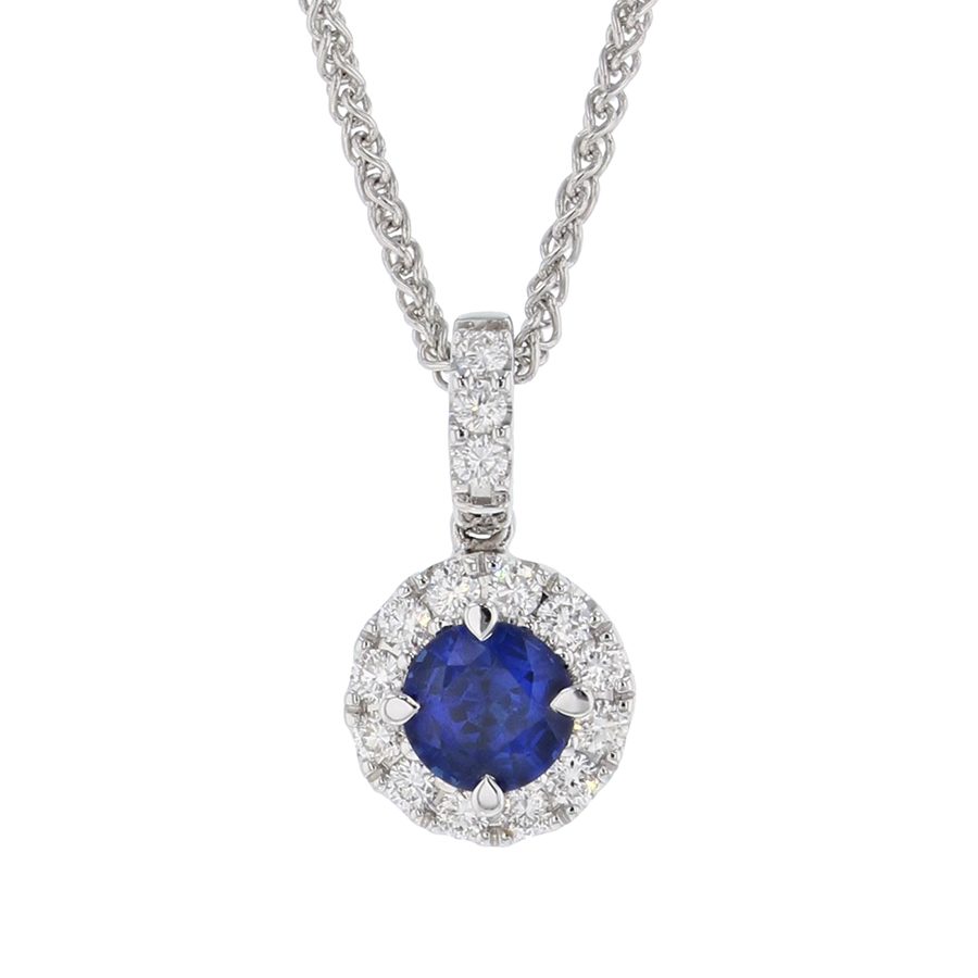 Pear Shaped Sapphire in White Gold Halo Pendant