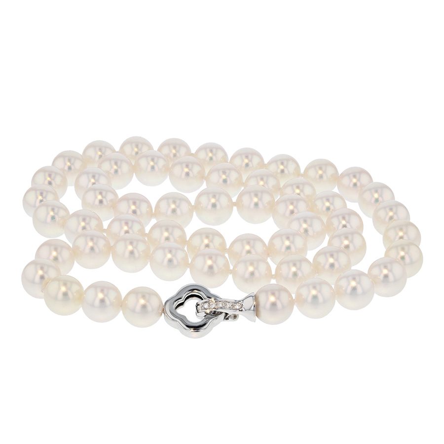 Cultured Pearl Necklace with White Gold Diamond Clasp