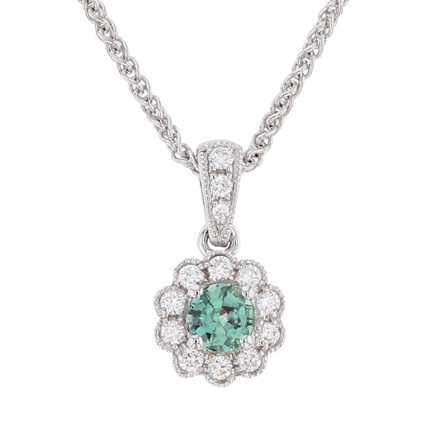 Pear Shaped Aquamarine in White Gold Halo Pendant
