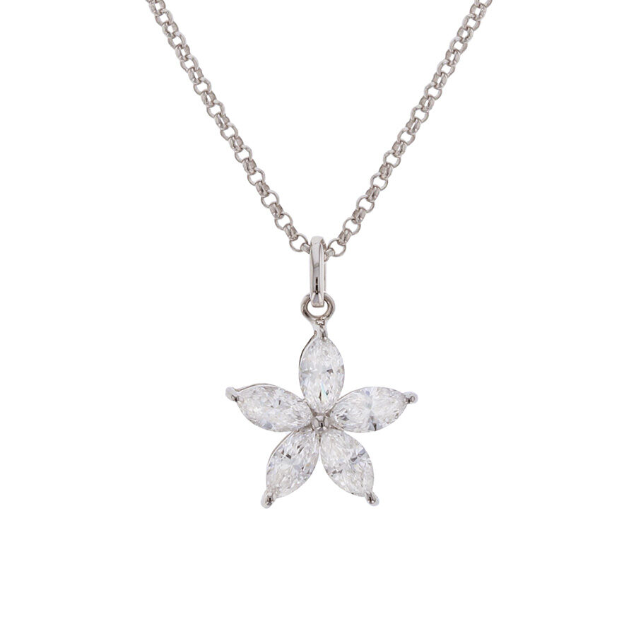 “Trapeze” Style Round Diamond in White Gold Necklace