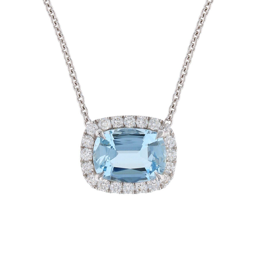 Cushion Cut Aquamarine in White Gold Halo Necklace