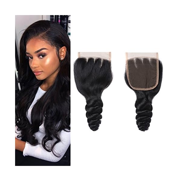 UNice Hair Icenu Series 8a Brazilian Loose Wave 4×4 Free Part Lace Closure, 100% Unprocessed Virgin Human Hair (14 inch)